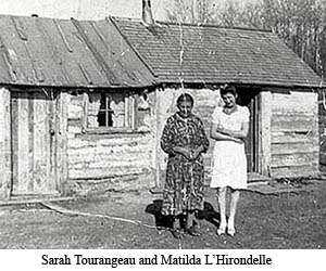 My grandmother, Matilda Belcourt (née L'Hirondelle) was raised in Lac Ste. Anne by her grandmother Sarah Tourangeau. My grandmother was only about 5'4" so you can see the height of their doorway and the condition of the homes, which was the norm for Metis families in this era (below photo).