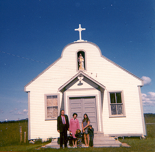 L to R: My grandparents, Emile Belcourt and Matilda Belcourt (née L'Hirondelle), my Auntie Cathy, my sister Suzanne Belcourt is in the middle and I'm to the right hiding my eyes from the sun.