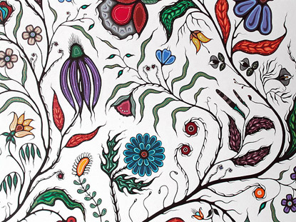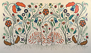 The contrast created by the black stems and large, bold blooms against the white background is meant to reflect the stark contrast between peace and war. Although difficult to not interject my own feelings of anger over the war, I wanted to counter balance the actions taken in Iraq with an act of constructive beauty as opposed to wasteful negativity. The result is a painting which is meant to inspire and be enjoyed.