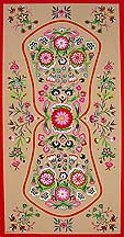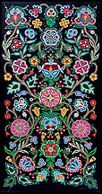In addition to the five portraits, there are also four other paintings, each measuring 24” x 48”. Of the four, three are renditions of historical beadwork, taken from samples of actual beadwork patterns found around the geographical area where Metis people have historically resided. In this way the series incorporates traditional Métis art and provides exposure to the audience of historical Métis artistic practices.