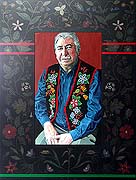 The five individuals who are portrayed are Métis leaders, activists, and/or artists. Together, the portraits, the written stories of the history of their families, and the supporting painted beadwork combines to provide a visual biography of the Métis Nation in Canada, its history and its current day struggles. When viewed together in exhibition the paintings are intended to contribute to the on-going re-telling of the whole story of the Métis people from past to present.
