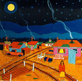 Jim Logan began his art career by painting social statement pieces from his own experience as a lay minister in Kwanlun Dunn Village on the ourskirts of Whitehorse, Yukon Territory. The most important work from this period was a series entitled "A Requiem for Our Children", which described existence within the Residential School system in Canada. Other noted pieces were the National Pastimes series in the exhibition, INDIGENA which commented on Canadian apathy toward the hardship and poverty of the Native community in Canada.